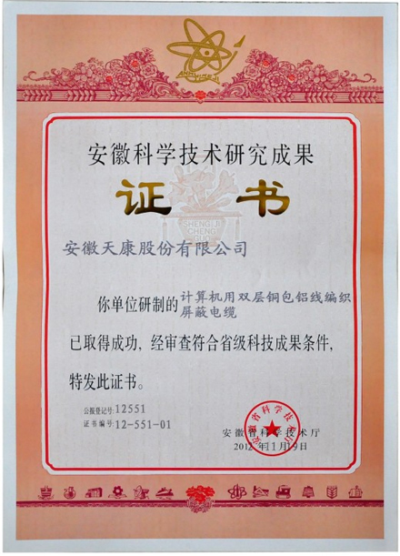 安徽科学技术研究成果证书(计算机用...