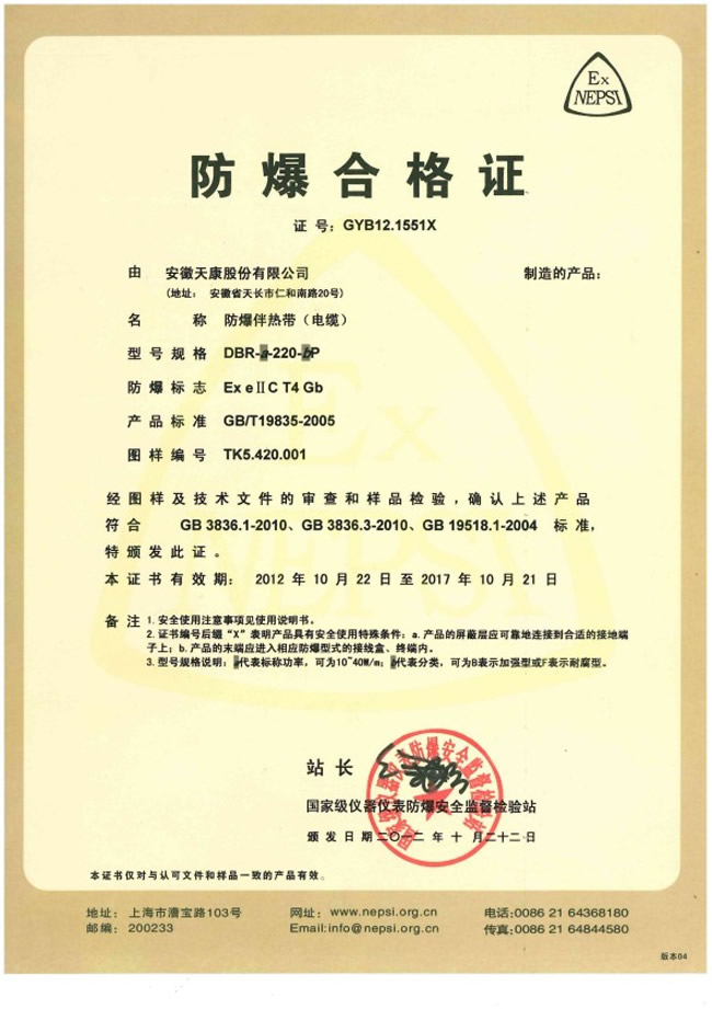 防爆证(防爆伴热带电缆)