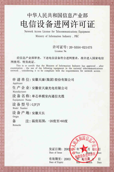 电信设备进网许可证
